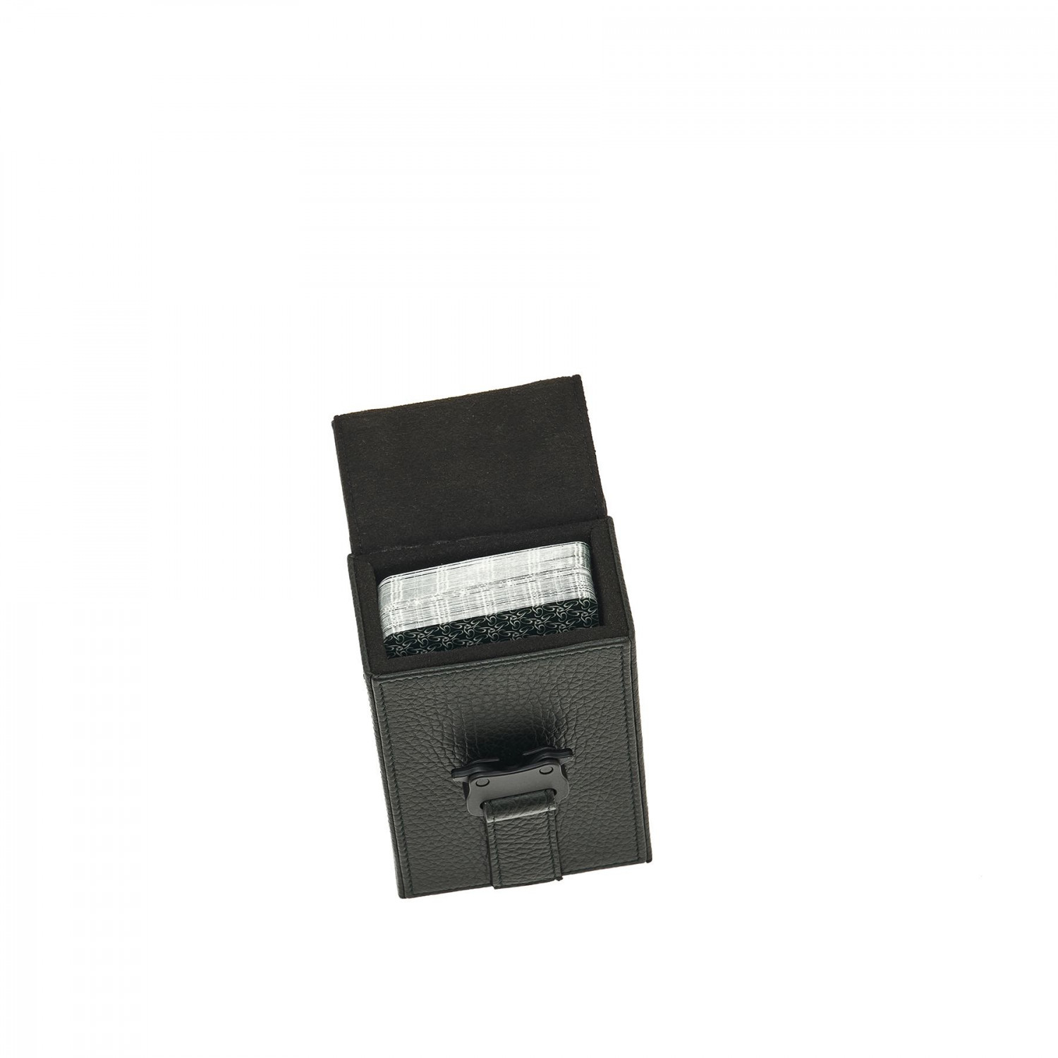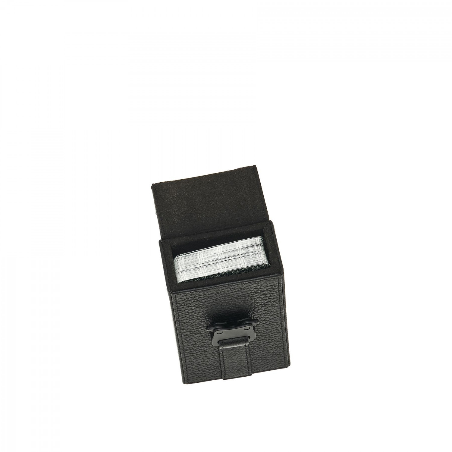 Astuccio portacarte da gioco in pelle, formato verticale.
