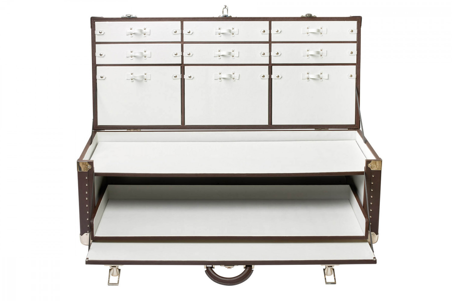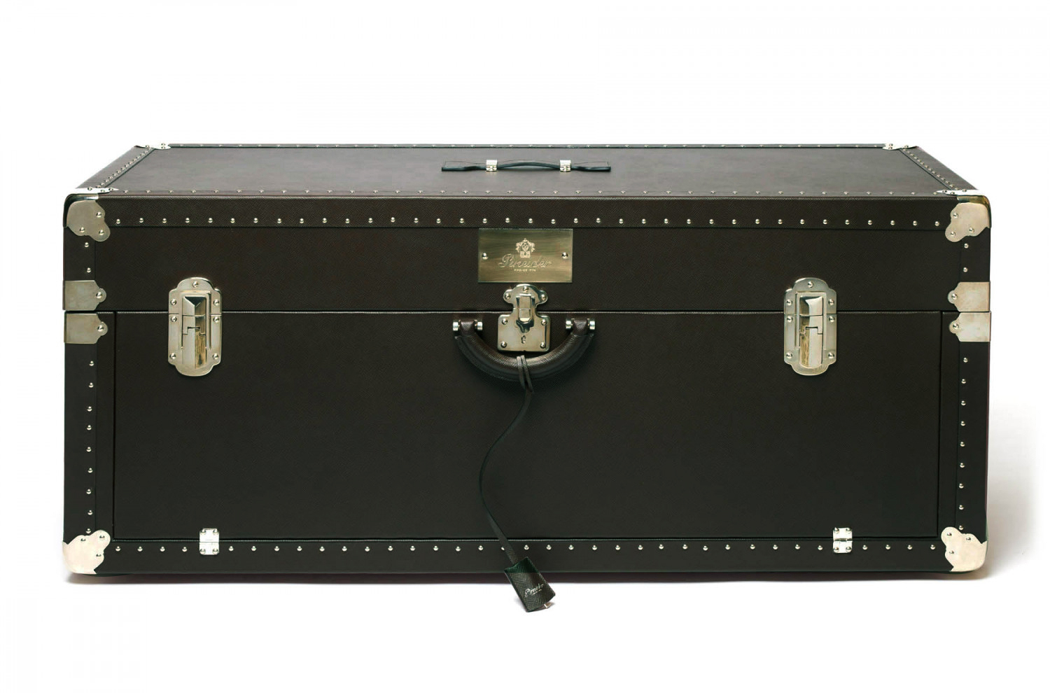 Baule fasciato, realizzato in pelle di vitello. Dimensione grande 120x51x51cm