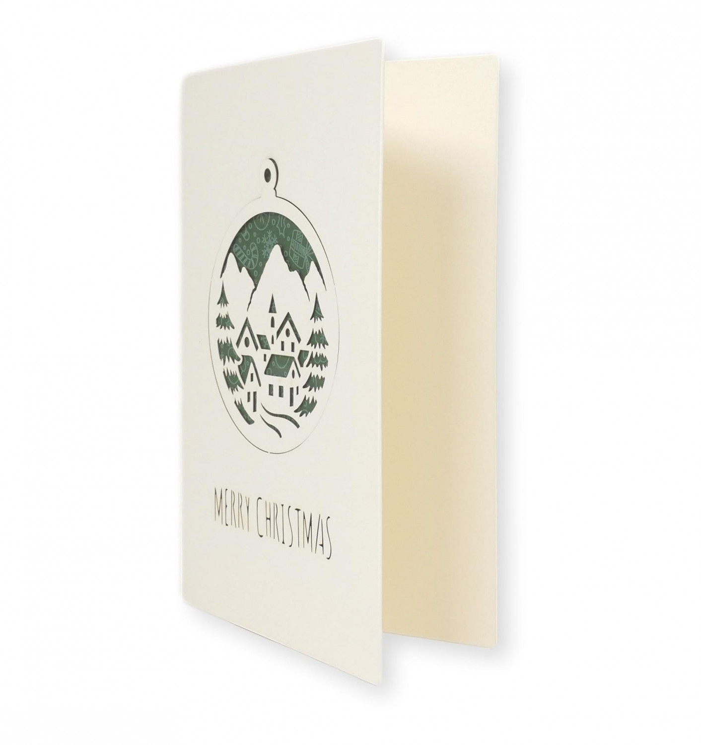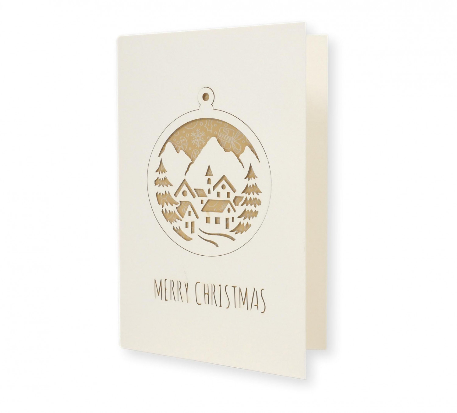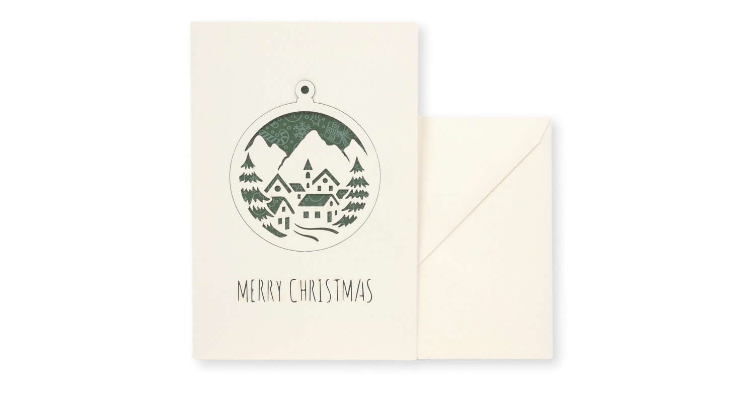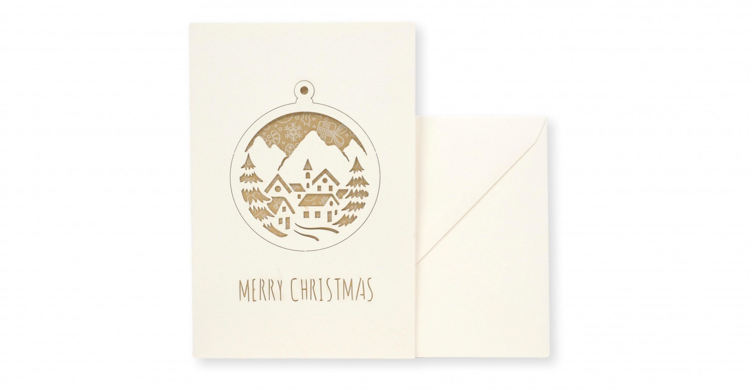 Biglietto di auguri con elemento decorativo staccabile stampato su carta Boston filigranata Pineider con busta