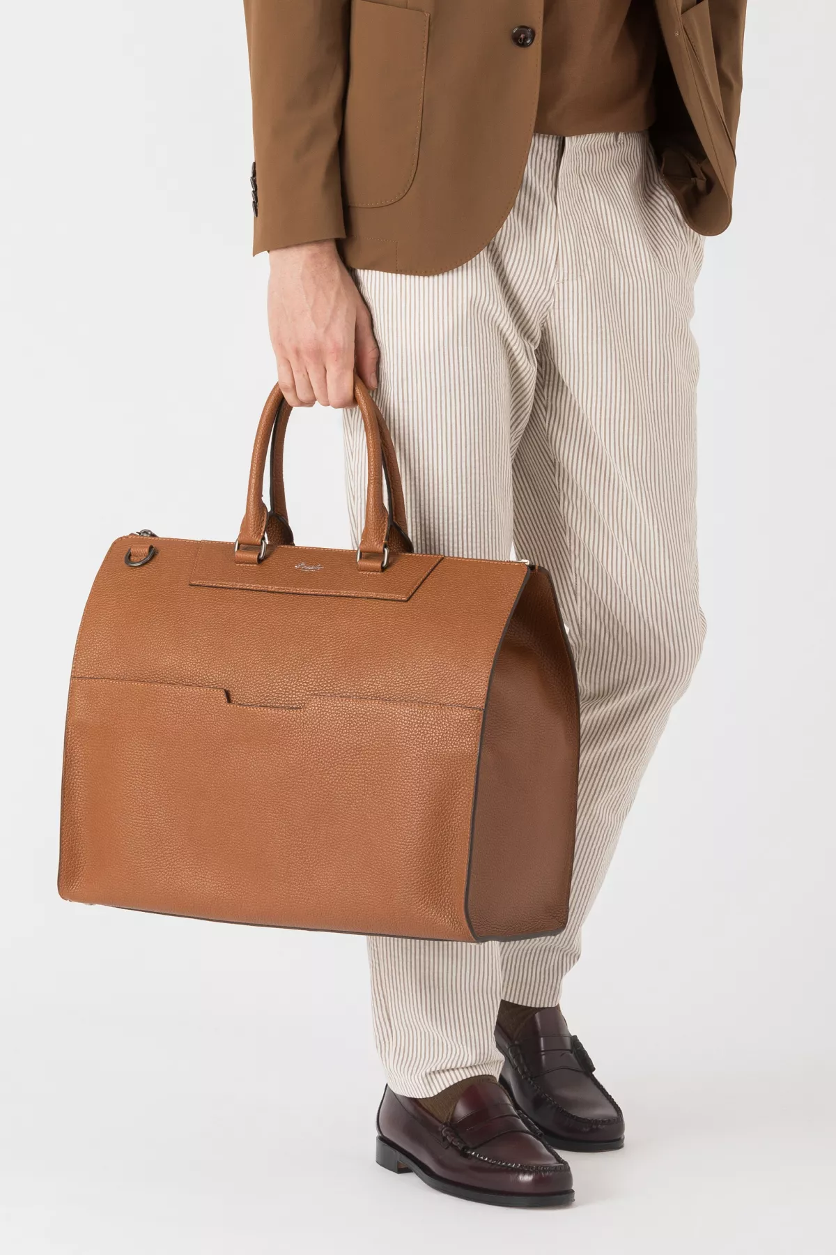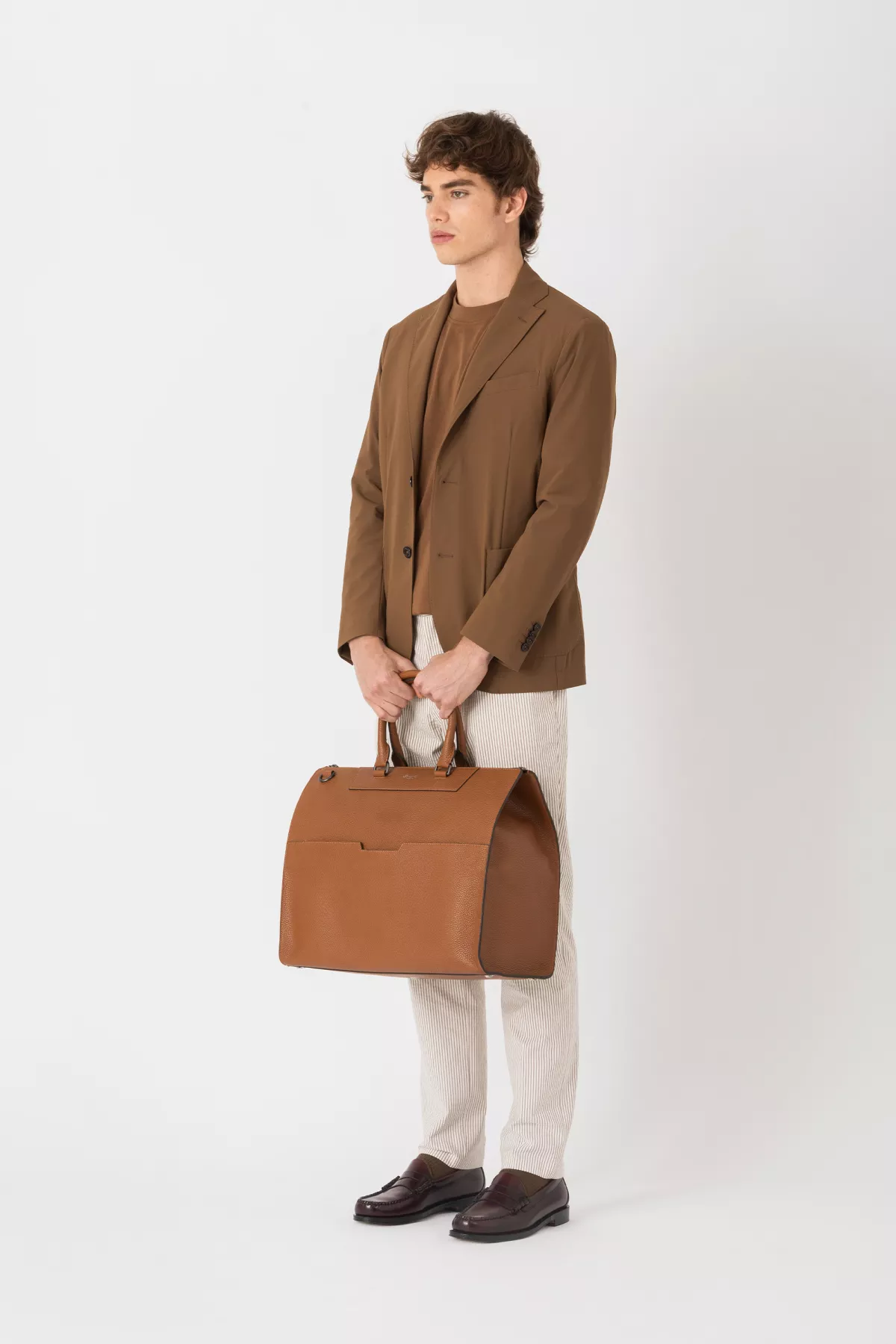 Business Duffle in pelle di vitello pregiata della Collezione Bottalato. Apertura completa con zip a doppio scorrimento, portabilità a mano, spalla o tracolla, per adattarsi alle tue esigenze. All'interno tasche portatutto, porta cellulare e porta penna. Il logo Pineider completa il design. Un compagno ideale per i tuoi spostamenti, che combina funzionalità e stile impeccabile. Made in Italy.