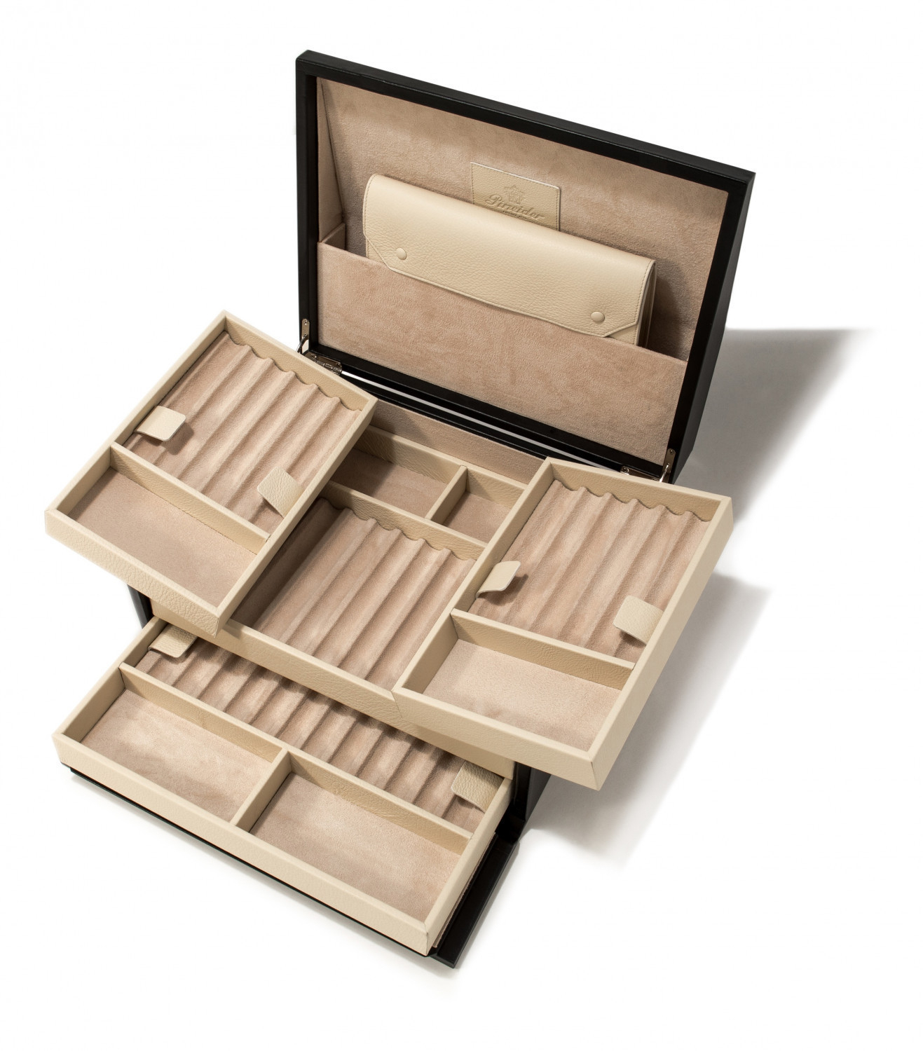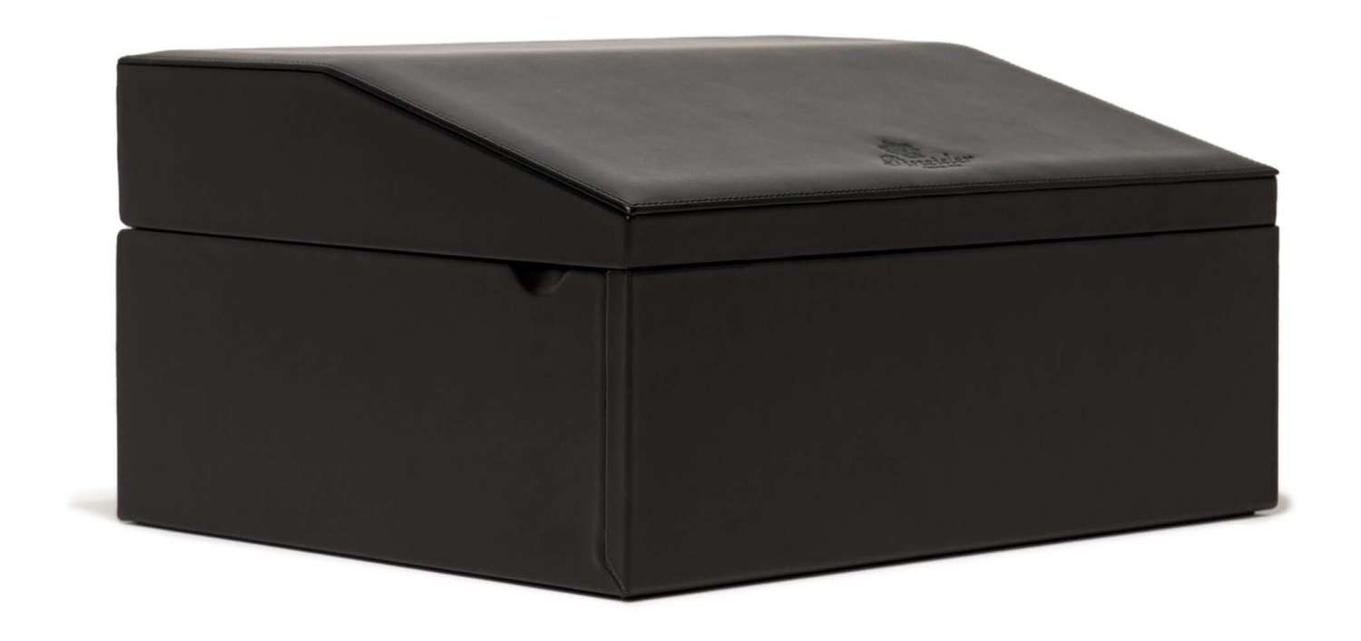 Il cofanetto portapenne Passion Box è in morbida pelle di vitello con fodera scamosciata. Puó contenere fino a 24 strumenti da scrittura in tre vaschette per penne una da 6 e una da 12 ed è dotata di un pochette estraibile. Dimensioni 350x289x180mm