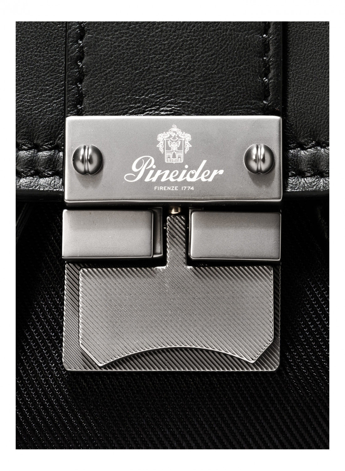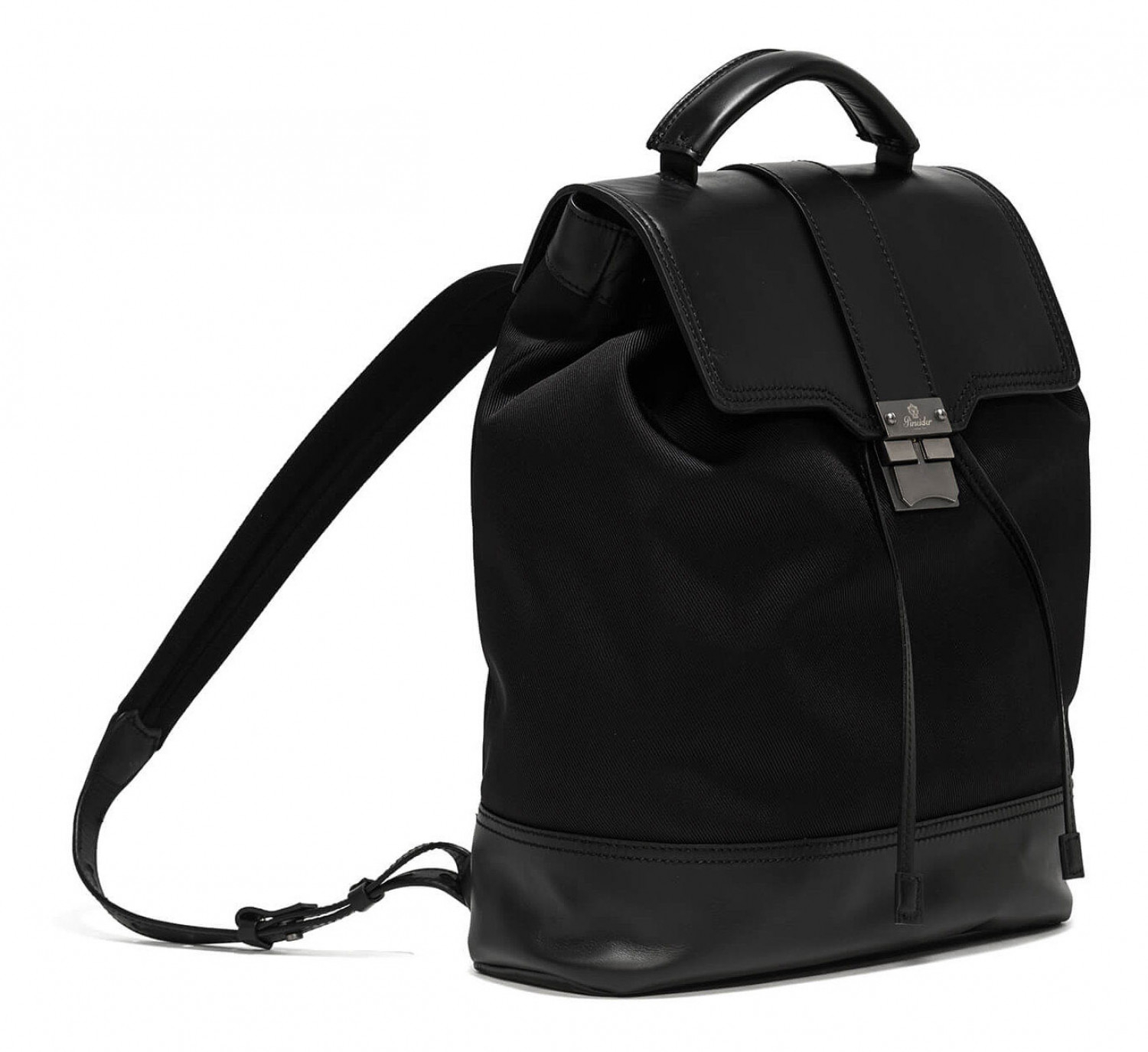 Zaino in pelle e nylon della nostra collezione Metro. Versatile per ogni occasione che sia professionale o casual. Interno con tasca a zip e chiusura a scatto in argento con logo Pineider.