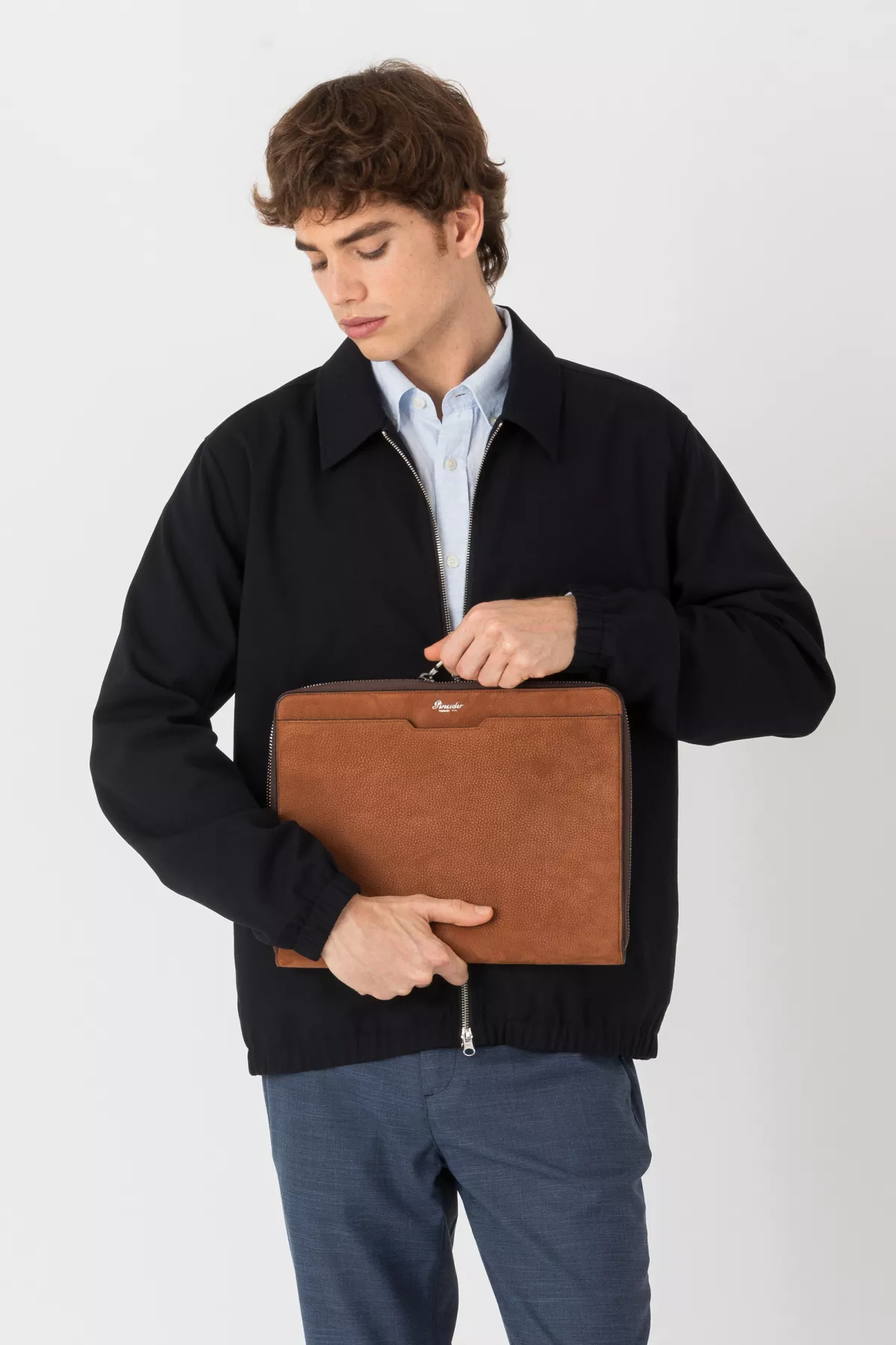 Porta iPad in pregiata pelle Nabuk. Dotato di una pratica cerniera, all'interno è progettato per contenere un iPad e dispone di un portablocco, portabiglietti da visita e 2 tasche per accessori, per avere tutto a portata di mano. Il logo Pineider completa l'accessorio. È il compagno ideale per i professionisti moderni, che combina funzionalità e stile in un unico prodotto. Made in Italy.