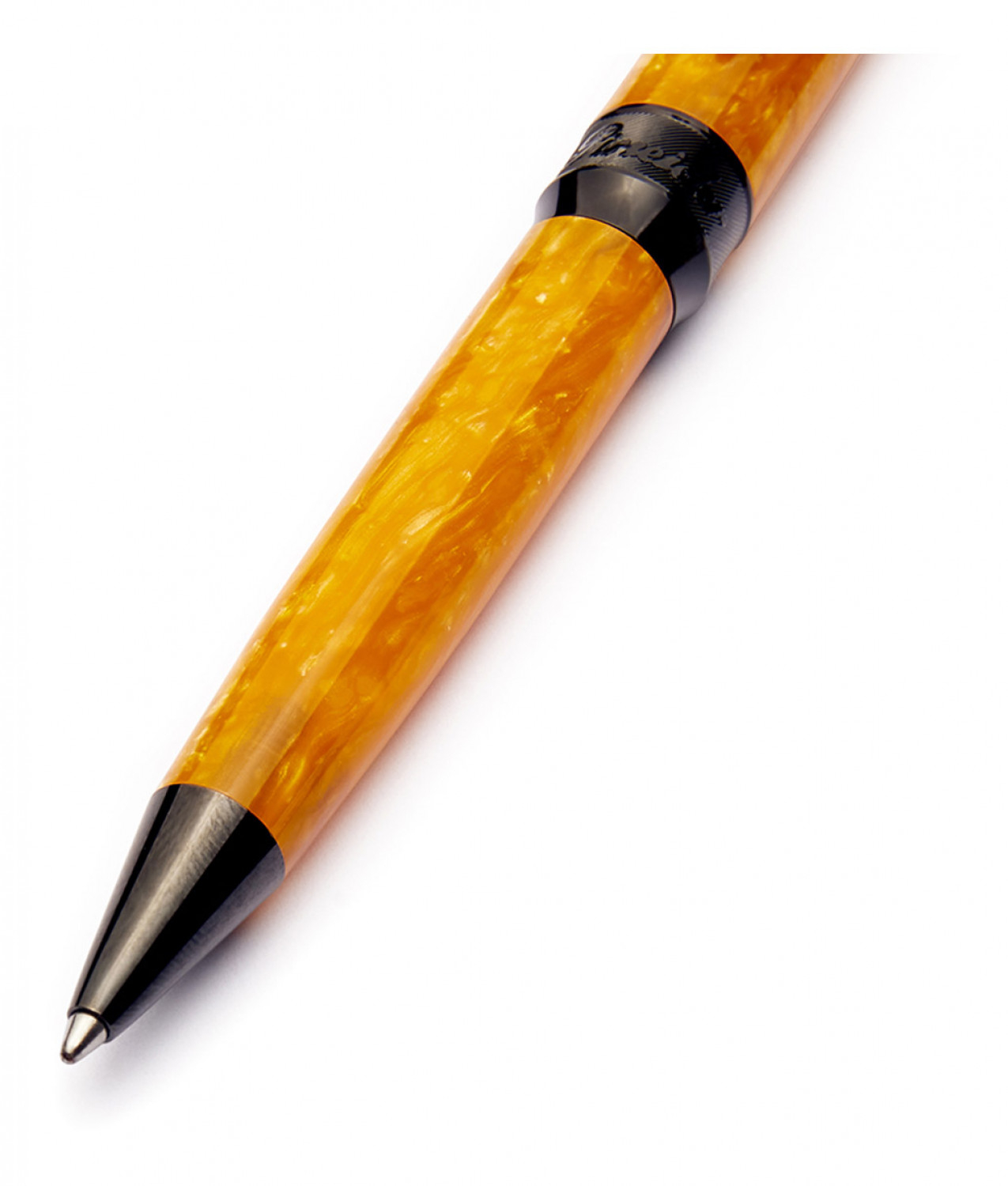 Rock penna a sfera con i suoi colori accattivanti in resina tornita ripropone un classico della collezione Pineider. I colori scintillanti sono abbinati a finiture nere profonde per un incredibile effetto accattivante. Punta in acciaio, chiusura a rotazione e sistema di ricarica refill. La penna è nel bellissimo luxury box dotato di carta e accessori per la ricarica.