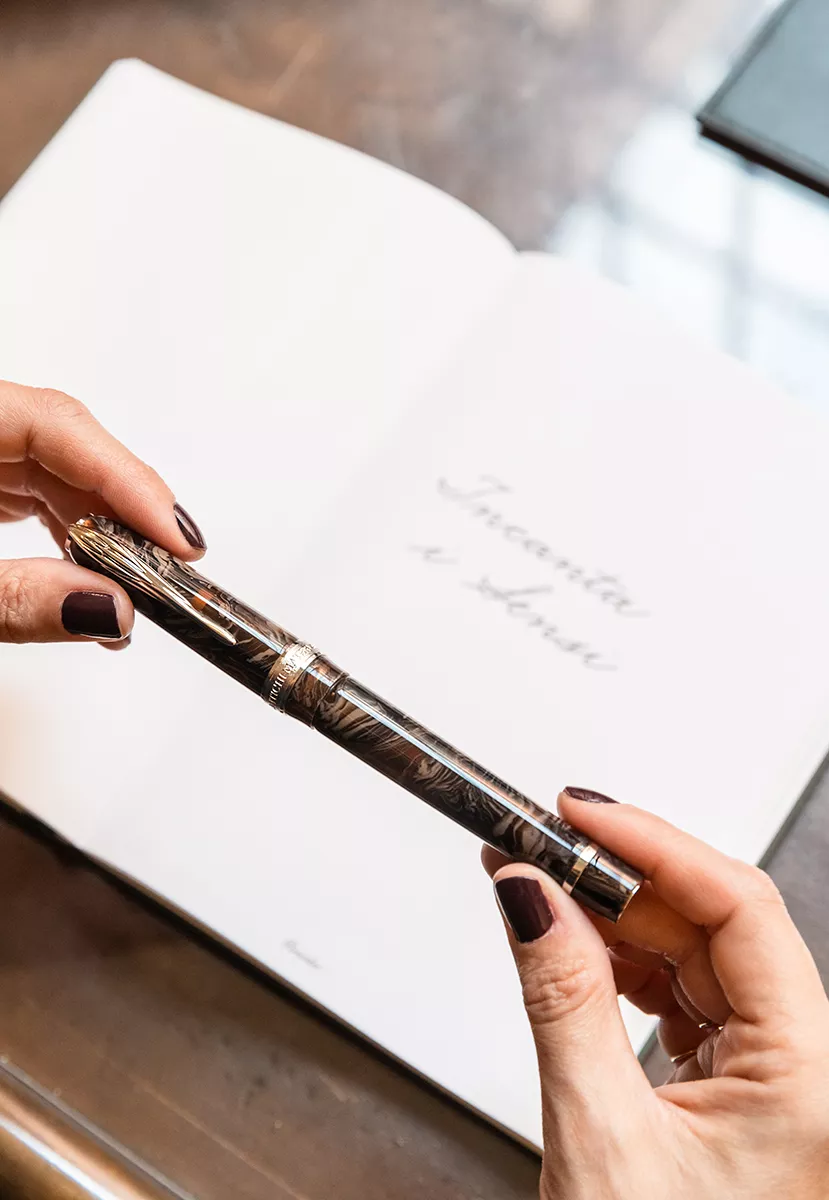 Pineider è entusiasta di svelare "Antichi Materiali", la sua innovativa collezione di strumenti di scrittura, ispirata ai materiali storici e limitata a 288 pezzi. Questa serie cattura l'eleganza delle epoche passate con colori che ricordano i mosaici bizantini, le tinte dei manoscritti medievali e le pigmentazioni rinascimentali. Disponibile nelle finiture Palladio e Oro Rosa, "Antichi Materiali" unisce resine luminose e sfumature dorate, con dettagli in metallo placcato palladio senza nickel e un sistema di riempimento Piston Filler. Ogni pezzo, dall'aspetto marmorizzato e vivace, celebra la maestosità dei materiali dimenticati e invita a riscoprire la loro storia attraverso l'arte della scrittura, connettendo chi scrive a un patrimonio culturale senza tempo.