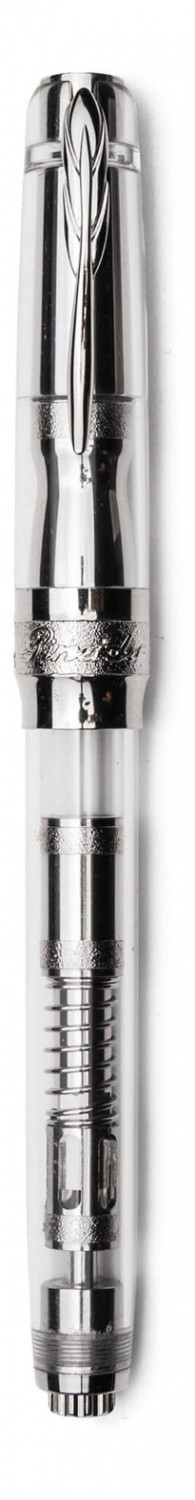 Mistery Filler Demonstrator penna stilografica possiede un misterioso sistema di riempimento in cui lo stantuffo è impreziosito da un meccanismo che permette di nascondere la cassa di attivazione. Undici componenti di alta precisione entrano nella realizzazione di questo meccanismo unico per combinare funzionalità e gratificazione. Realizzata in resistente ultraresina trasparente, con punta in acciaio inossidabile placcata in palladio, chiusura Lock System a magnete e un elegante luxury box che la contiene La mystery filler è limitata e numerata a 888 penne per ogni combinazione di colori. La formulazione dei nostri inchiostri è appositamente studiata per evitare l'essiccazione. Made in Italy.
