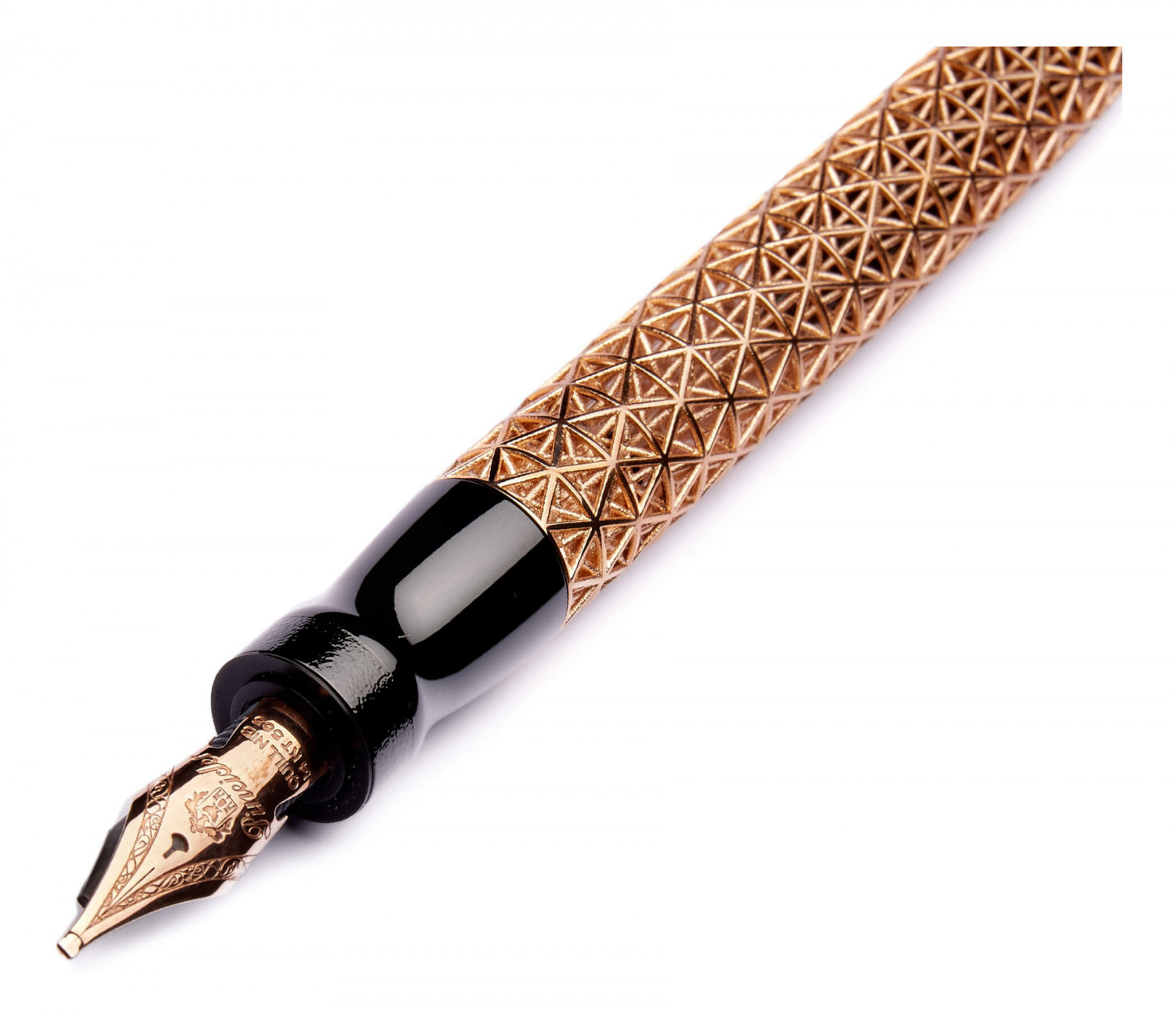 La penna stilografica Pineider Psycho è un'esperienza di design entusiasmante e creativa incentrata sull'evidenziazione di materiali e concetti spesso utilizzati nella progettazione di gioielli. In quanto tale, questa penna stilografica con convertitore di cartucce in edizione limitata fatta a mano presenta metalli semipreziosi, placcatura ad alto spessore, fusioni a cera persa e un pennino per penna stilografica in oro 14kt. Oro rosa: placcatura in oro rosa su corpo / cappuccio in argento sterl