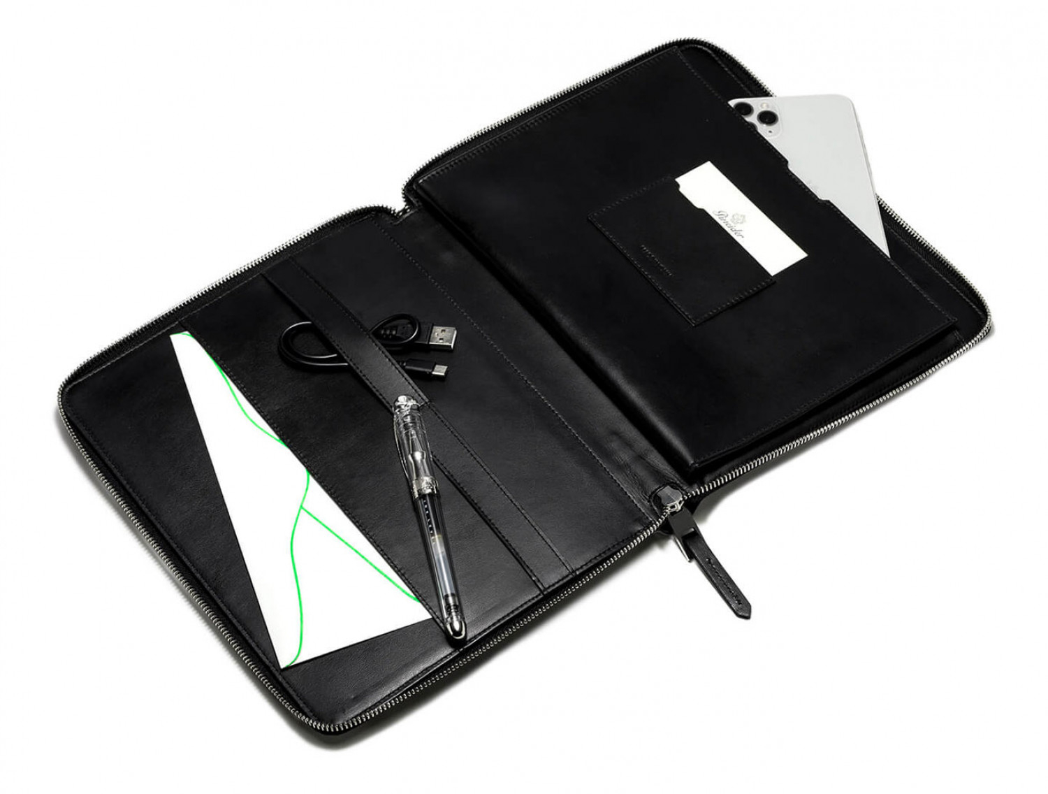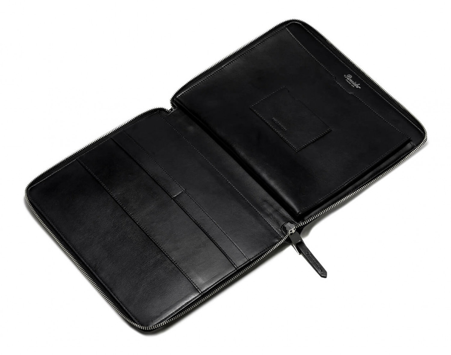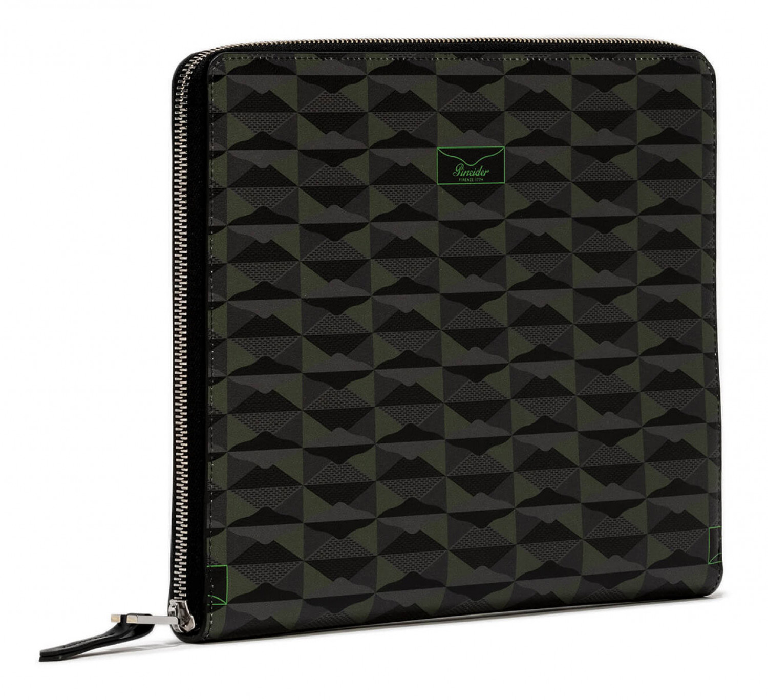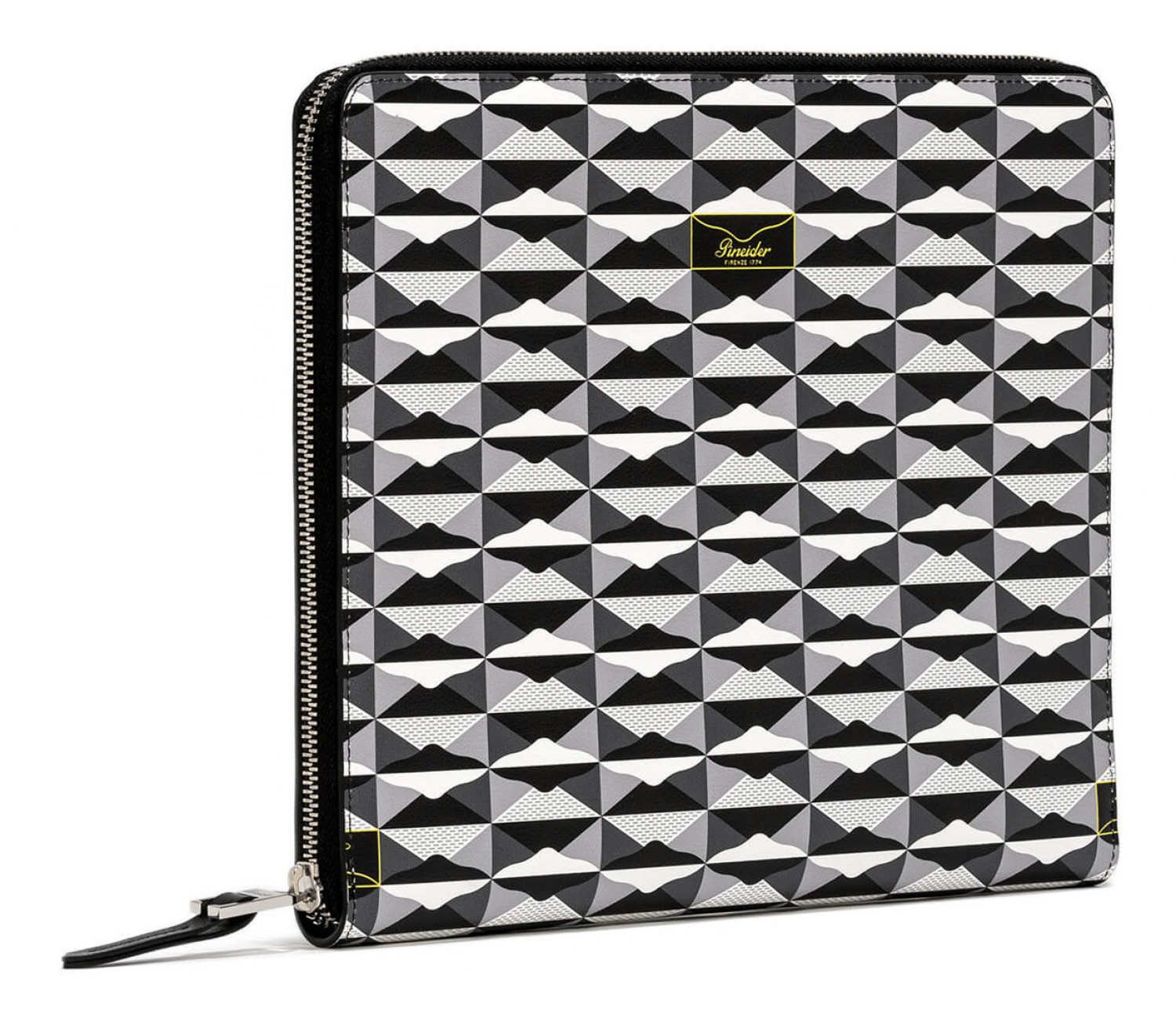 Porta iPad con chiusura a zip in pelle lista stampata con motivo Empress, interno in pelle di vitello liscio.