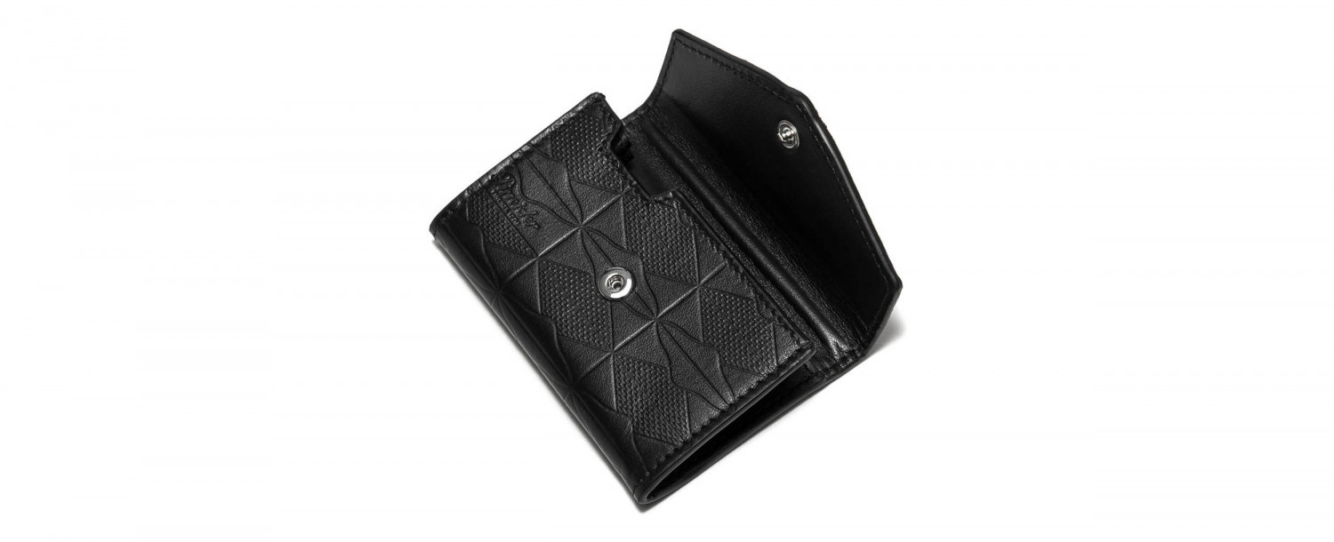 Porta carte compatto in pelle di vitello liscia stampata con logo Pineider Empress. 6 scomparti porta carte di credito e una tasca centrale.