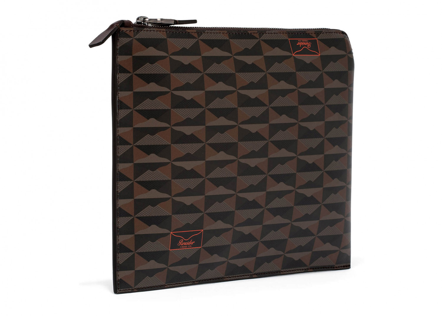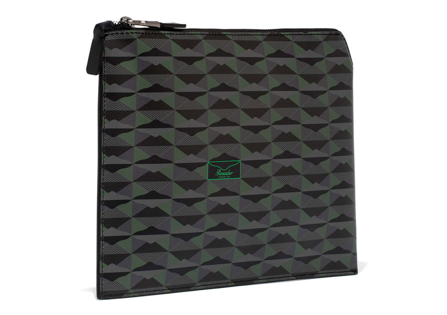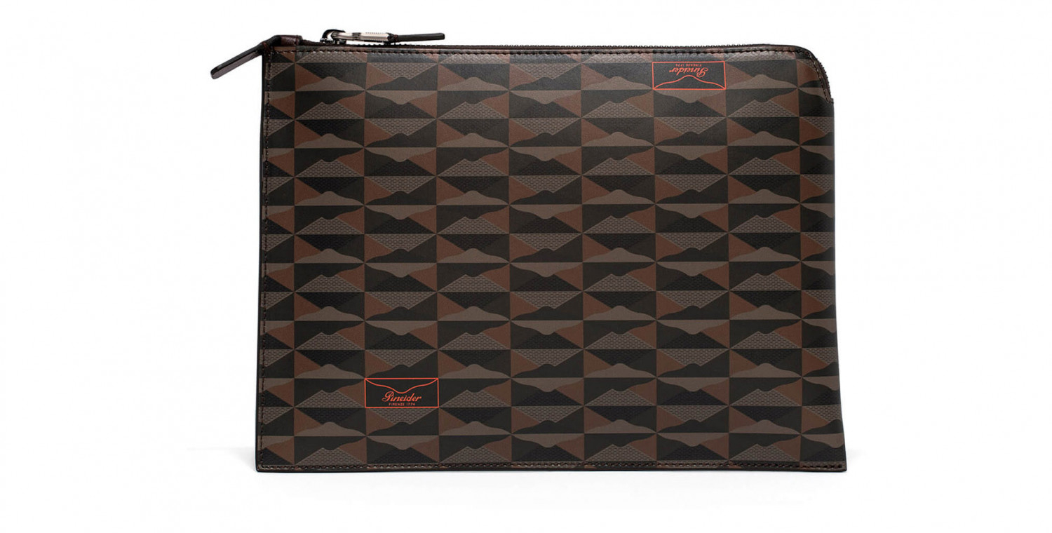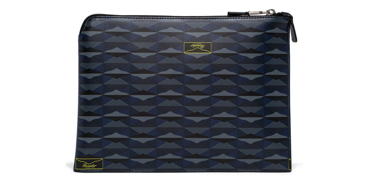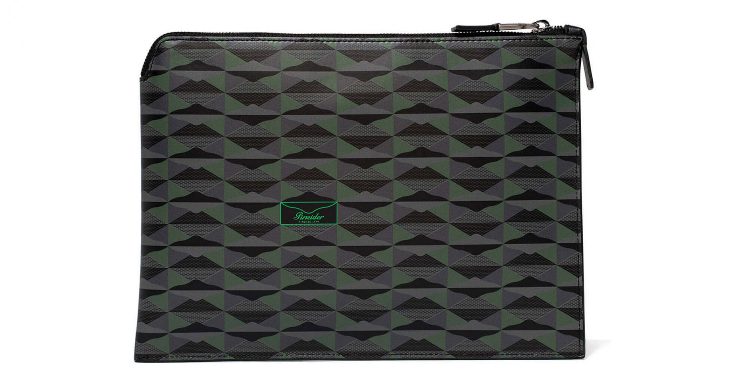 Pouch con chiusura a zip in pelle di vitello stampata in Digital Empress. Il finale lampo nascosto all'interno del prodotto lascia lo spazio all'inserimento della penna. Fodera sale e pepe 100 % cotone. Logo Pineider. Made in Italy.
