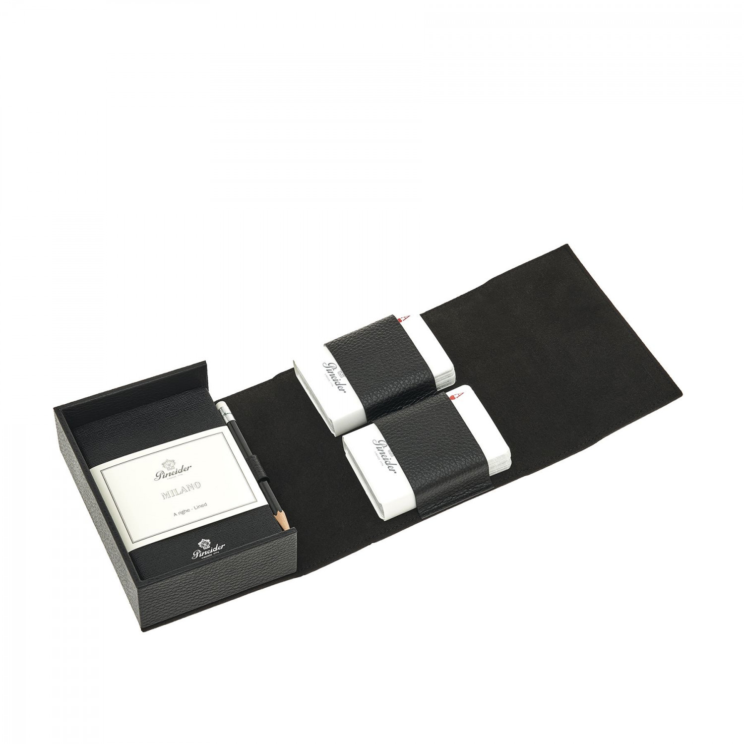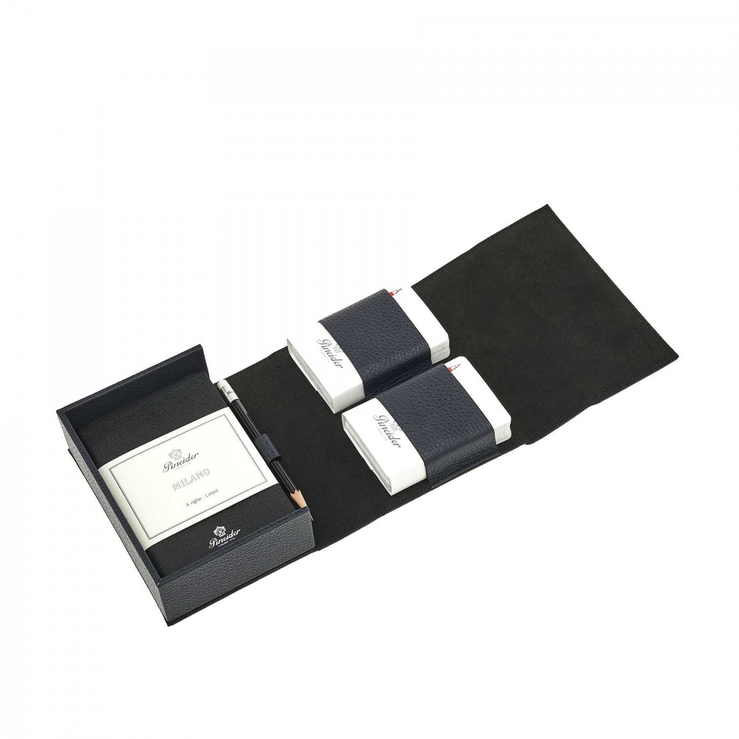 Elegante set di carte da gioco con custodia realizzata in pelle Saffiano. I due mazzi di carte rappresentano il mondo dell'artigianalità Pineider. Nel prodotto è incluso anche un quaderno Pineider e una matita.