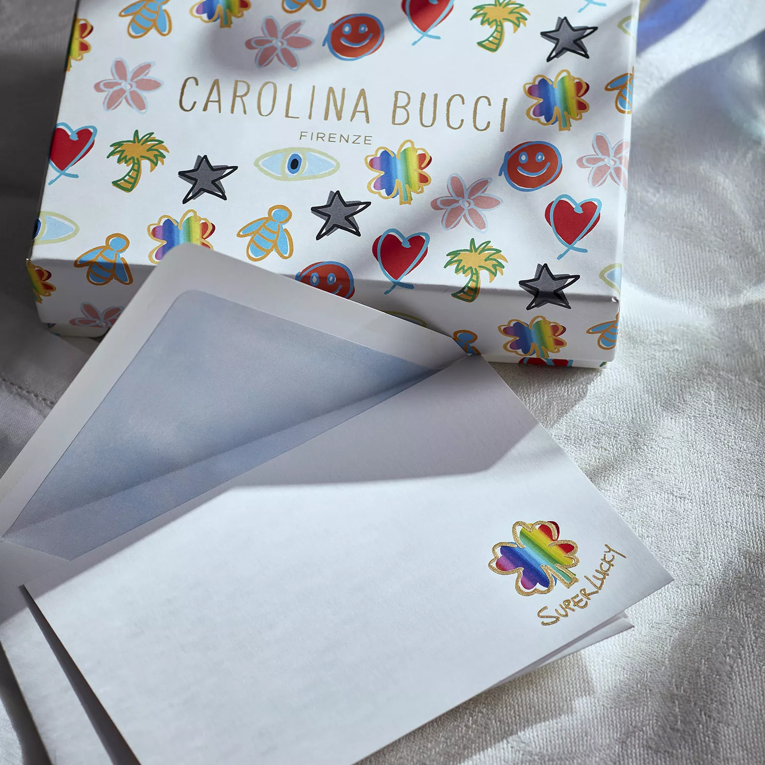 Pineider, simbolo dell'eccellenza nella cartoleria fiorentina, celebra la tradizione della scrittura a mano con un set esclusivo di 8 carte "Portafortuna" e buste corrispondenti. Ogni carta riflette i temi dei braccialetti "8 Lucky" di Carolina Bucci, enfatizzando l'importanza di inviare auguri personali e sinceri. Questo set permette di condividere messaggi di Amore, Salute, Felicità, Viaggi, Protezione, Amicizia e Fortuna con i propri cari, mantenendo viva l'arte della corrispondenza scritta.