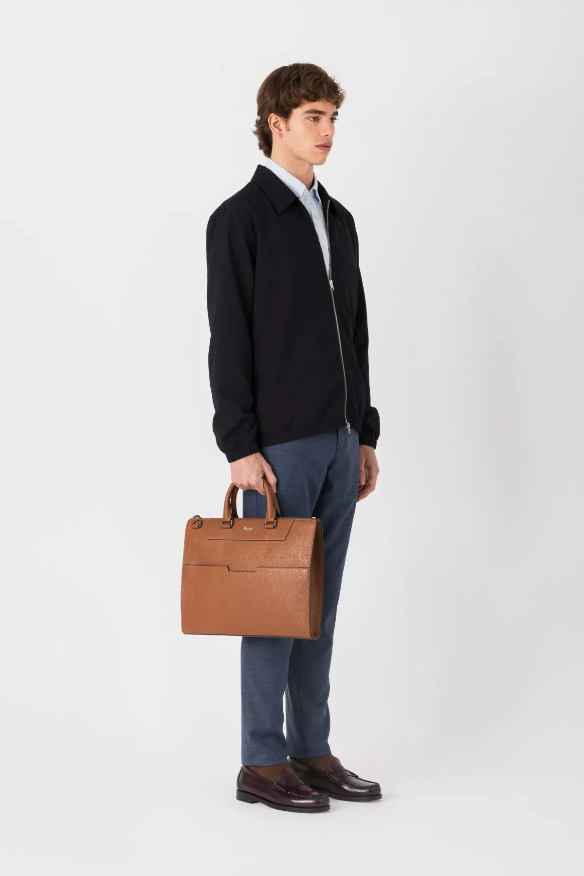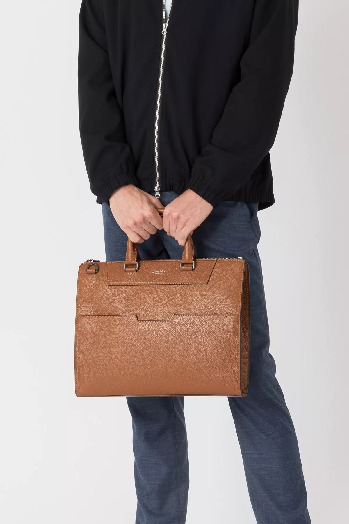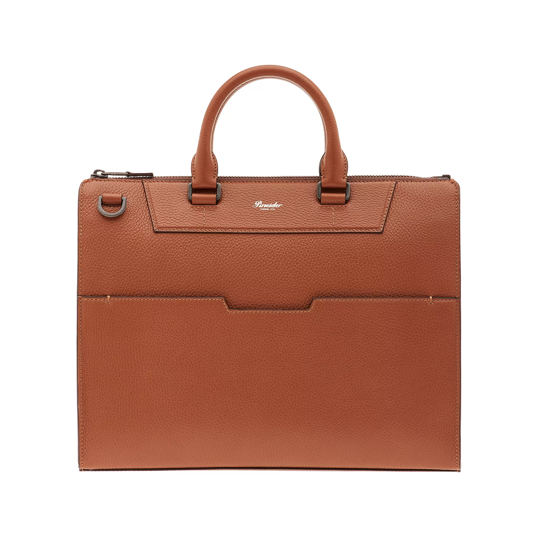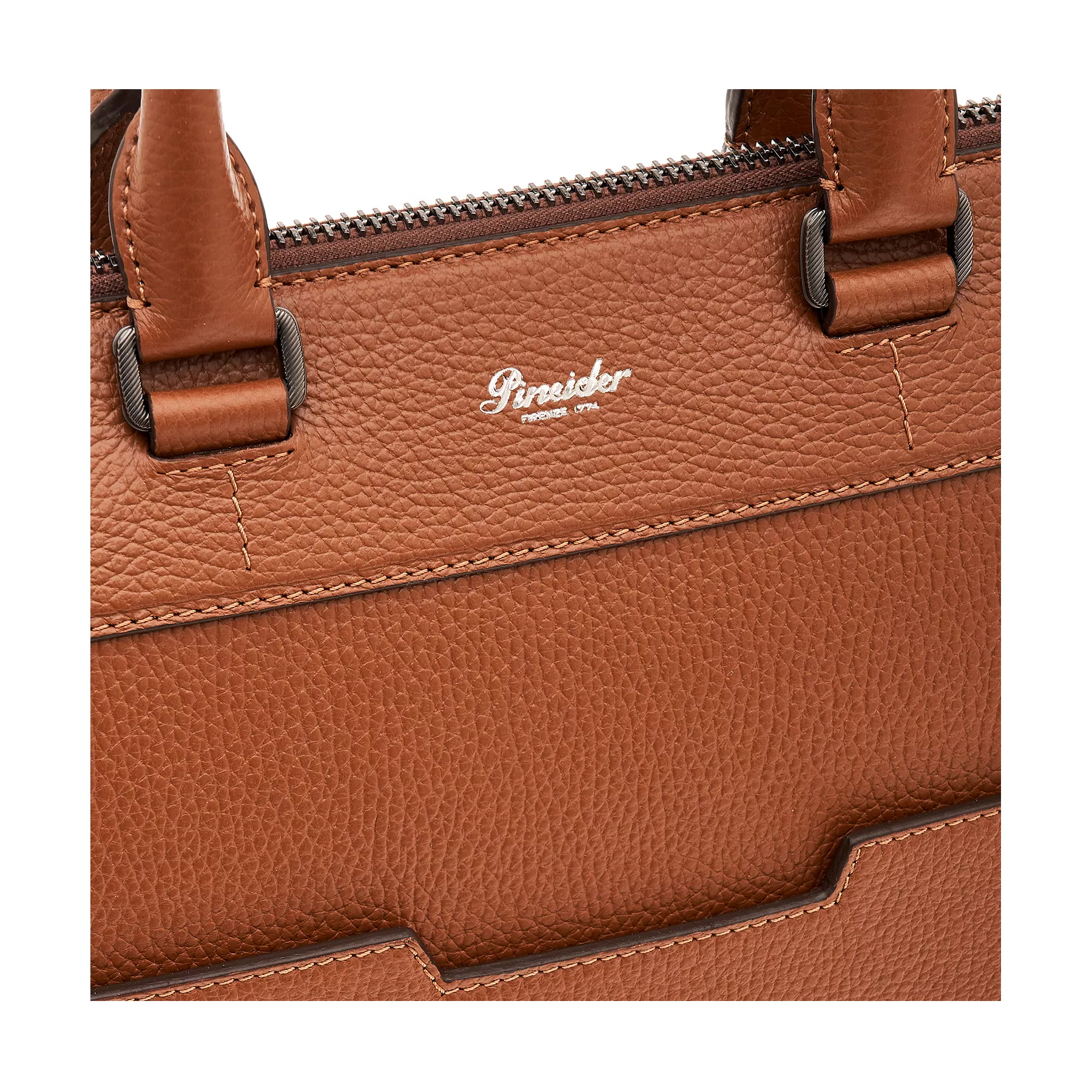 Slim Briefcase in pelle di vitello pregiata della Collezione Bottalato. La sua apertura con zip divisibile e la tasca frontale con patta offrono un design versatile. All'interno, un porta laptop da 15 pollici, tasca porta penna, porta cellulare, porta biglietto da visita e porta tutto. Dotata di Trolley System per un comodo trasporto. Portabilità sia a mano che a tracolla. Il logo Pineider completa il design. Made in Italy.