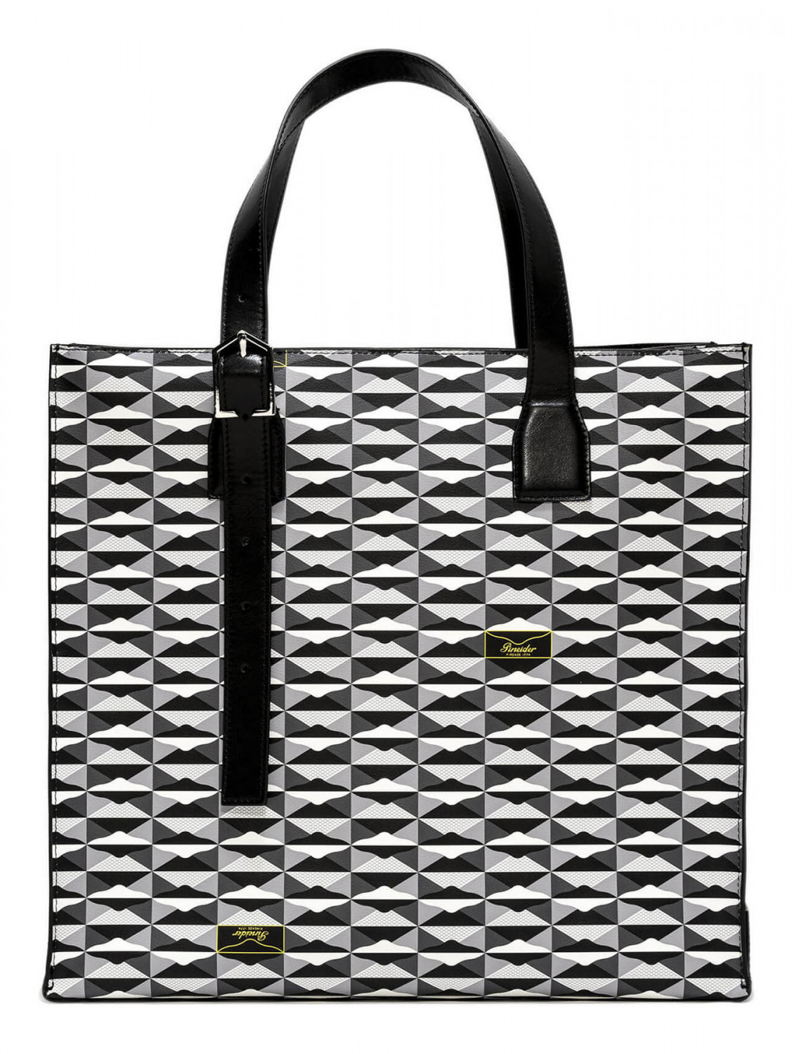 Tote bag in pelle stampata con motivo Empress e riporti in pelle di vitello liscio.Accessori e zip con finitura palladio.Personalizzata Pineider. Made in Italy.