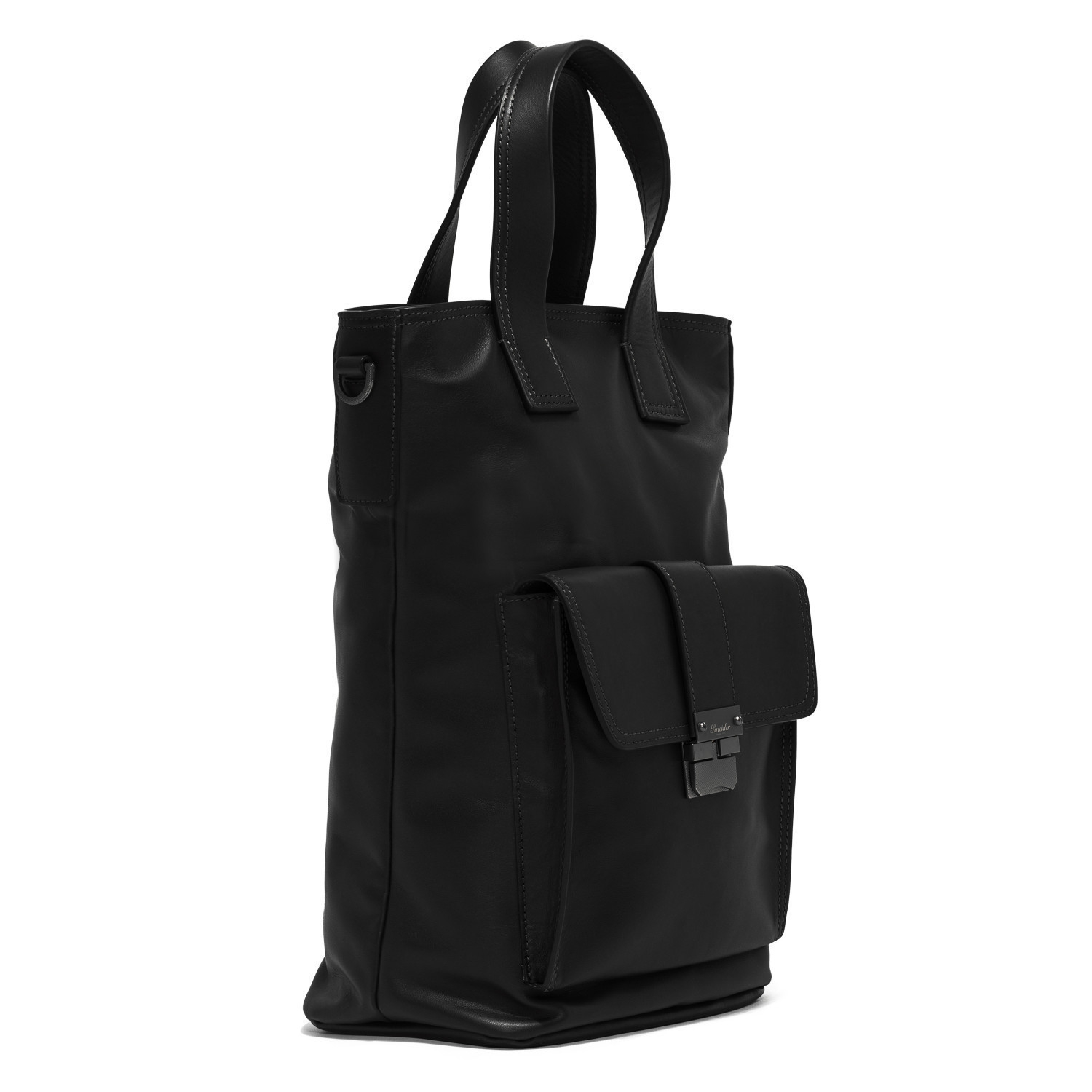 Borsa tote in vitello palmellato. Zip monoscorrimento nascosta. Tasca davanti con pattina e chiusura personalizzata. Tracolla regolabile in poliestere. Fodera 100% cotone. Metalli finitura rutenio satinato. Made in Italy.