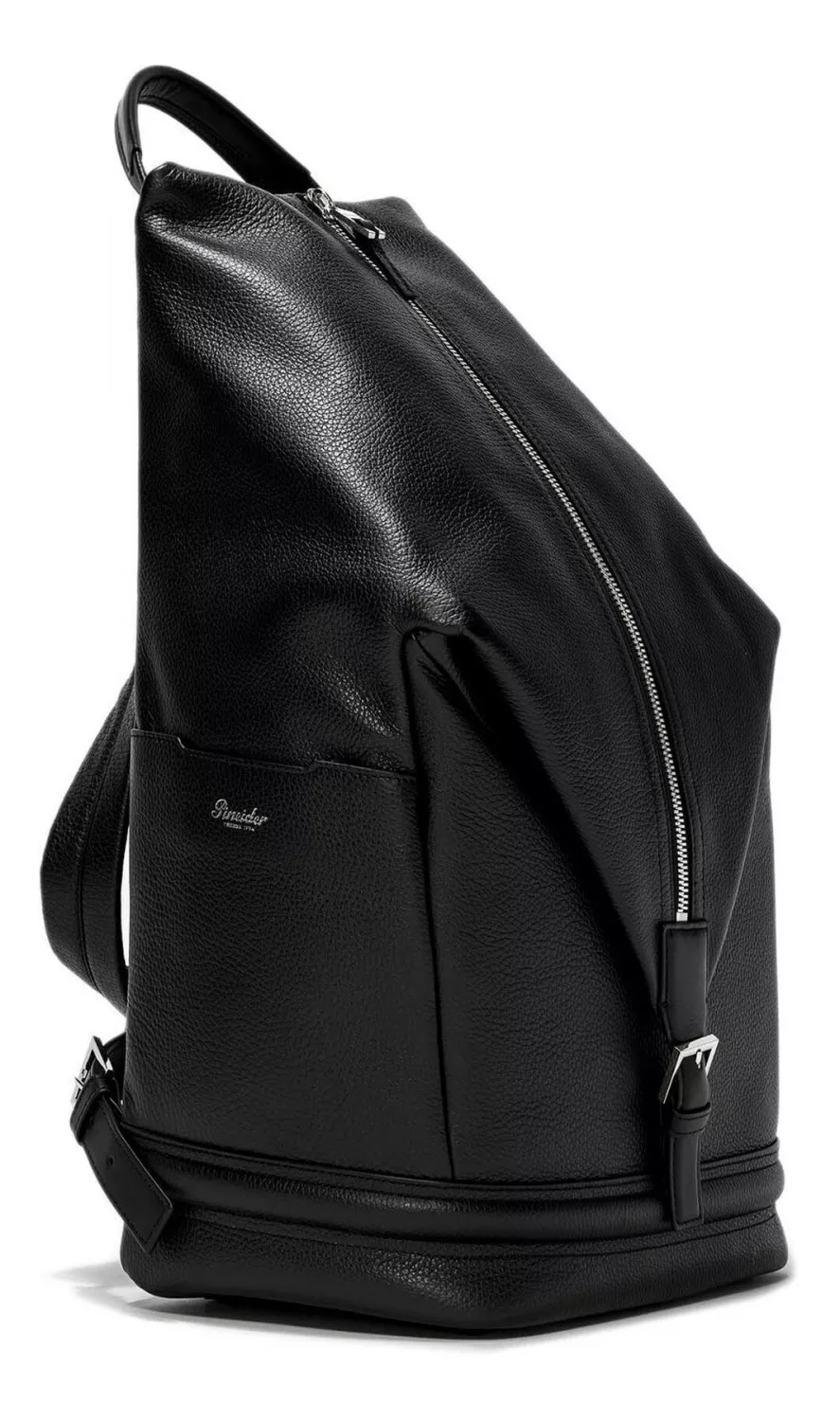 Zaino donna in vera pelle bottalata con tasca zip a doppio scorrimento con chiusura con calamita e fibbia. All'interno una tasca porta biglietto da visita e una tasca porta tutto con logo completano il modello. Spallacci non preformati in pelle e cavallotti fatti a mano. Logo Pineider. Made in Italy.